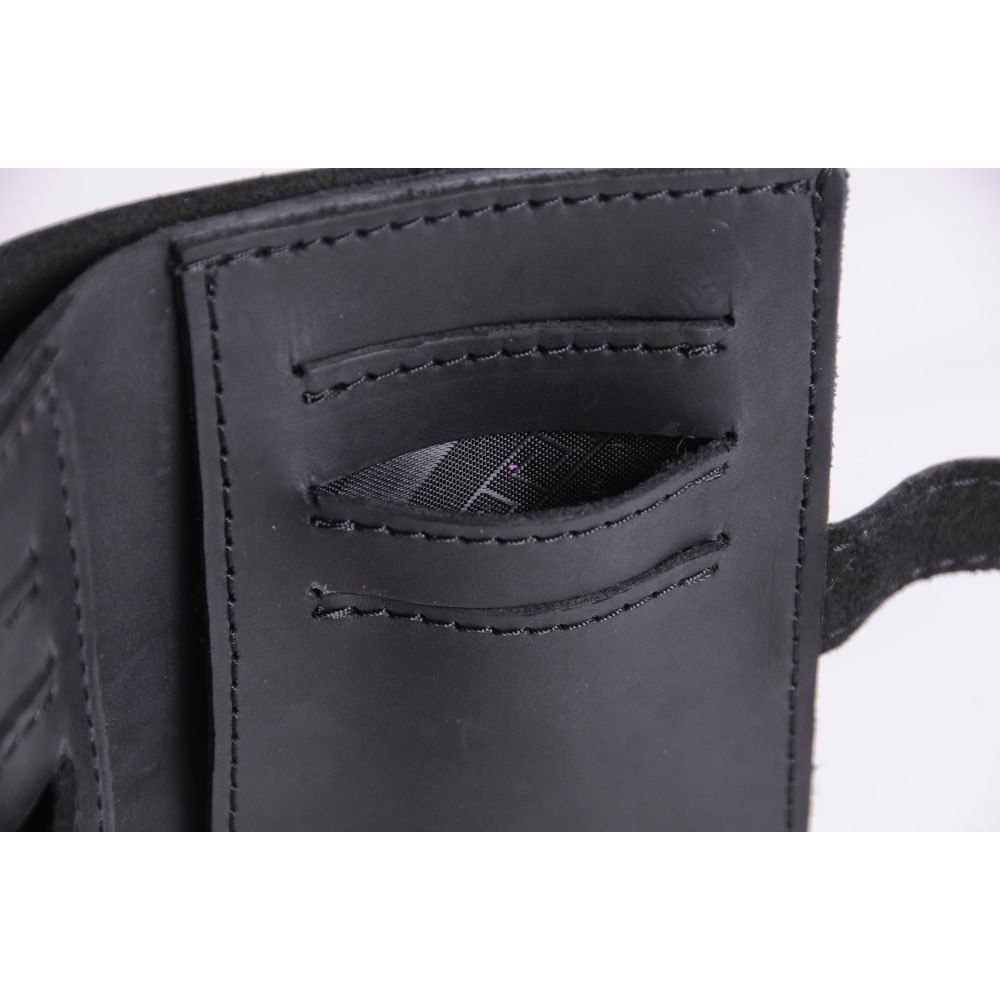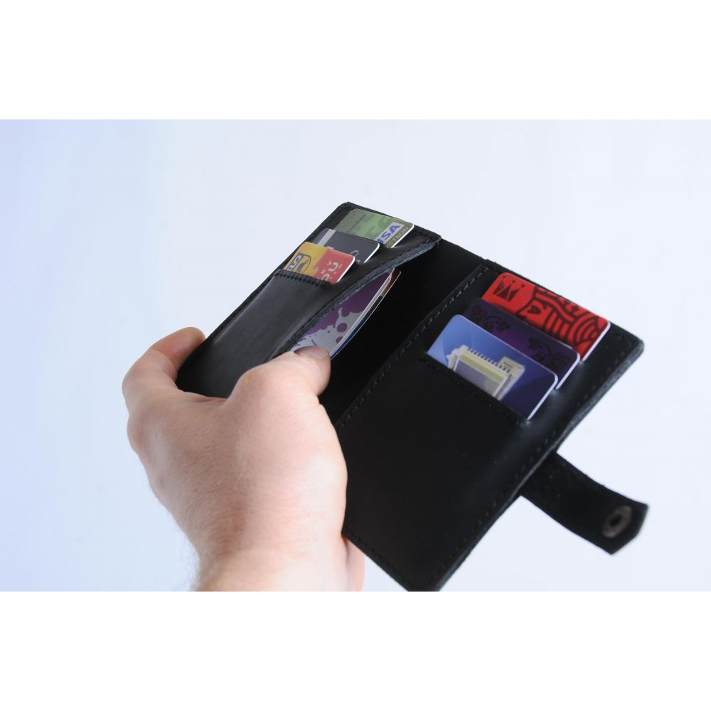 <.p>Кошелек "Немо" имеет 6 отделений для пластиковых карточек (все на подкладке внутри) Под ними есть 2 потайных отделения, в которых свободно поместяться водительские права старого образца или пенсионное удостоверение. Также есть одно большое отделение для денежных купюр. Хороший вариант кошелька для тех, кому не нужна мелочница в кошельке.