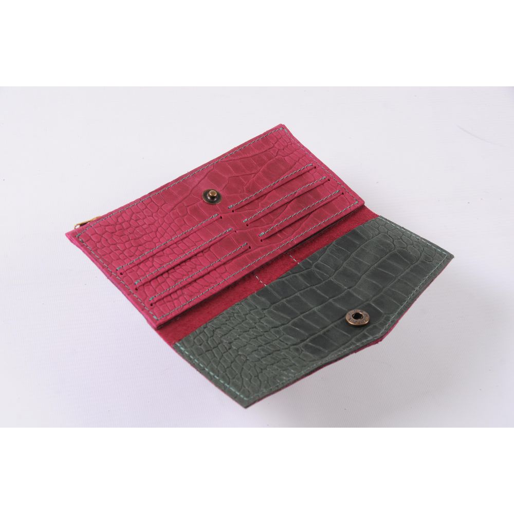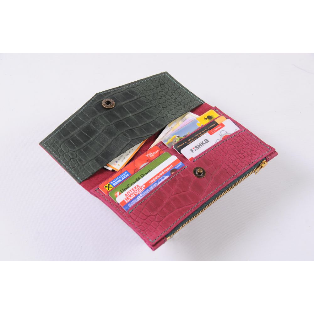 Кошелек "Дельта " имеет 6 отделений для пластиковых карточек (все на подкладке внутри) Одно большое отделение для денежных купюр. И еще одно отделение (под крышкой) тоже для купюр. Так же в торце кошелька имеется одно отделение на молнии (YKK), в котором можно размещать монетки или еще что) Очень удобная модель для тех, кто любит кошельки в форме конвертика.