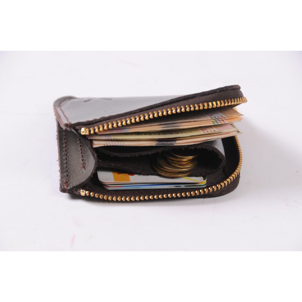 Закрывается на молнию. Отделение для монет и два отделения для купюр или пластиковых карточек. Несмотря на небольшой размер, он довольно вместительный –вольно входят 7-10 карточек и 20-40 купюр, плюс монетки.
