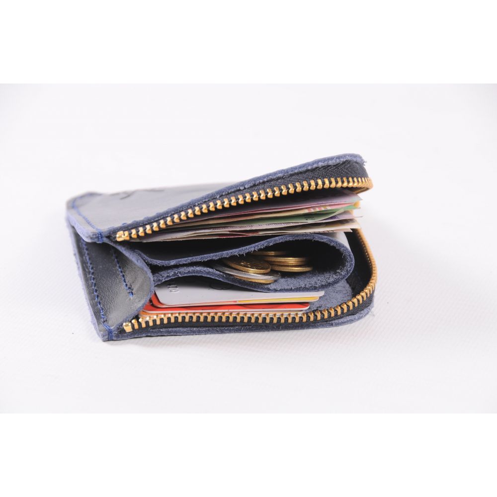 Закрывается на молнию. Отделение для монет и два отделения для купюр или пластиковых карточек. Несмотря на небольшой размер, он довольно вместительный –вольно входят 7-10 карточек и 20-40 купюр, плюс монетки.