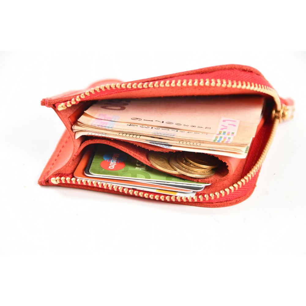Закрывается на молнию. Отделение для монет и два отделения для купюр или пластиковых карточек. Несмотря на небольшой размер, он довольно вместительный –вольно входят 7-10 карточек и 20-40 купюр, плюс монетки.