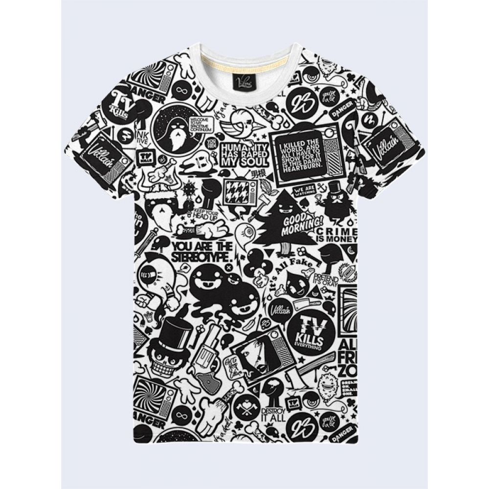 Футболка Black and white stickers - це стильне рішення для підлітка, молодого хлопця, чоловіка. Хочете купити 3д футболки? Оригінальні і красиві