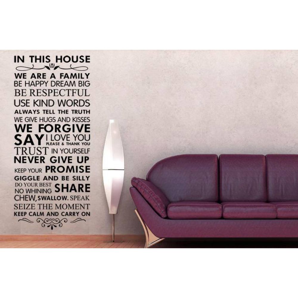 Виниловая наклейка на стену Семейные правила - это удачный декор для зала, гостиной, спальни, комнаты, кухни, коридора.